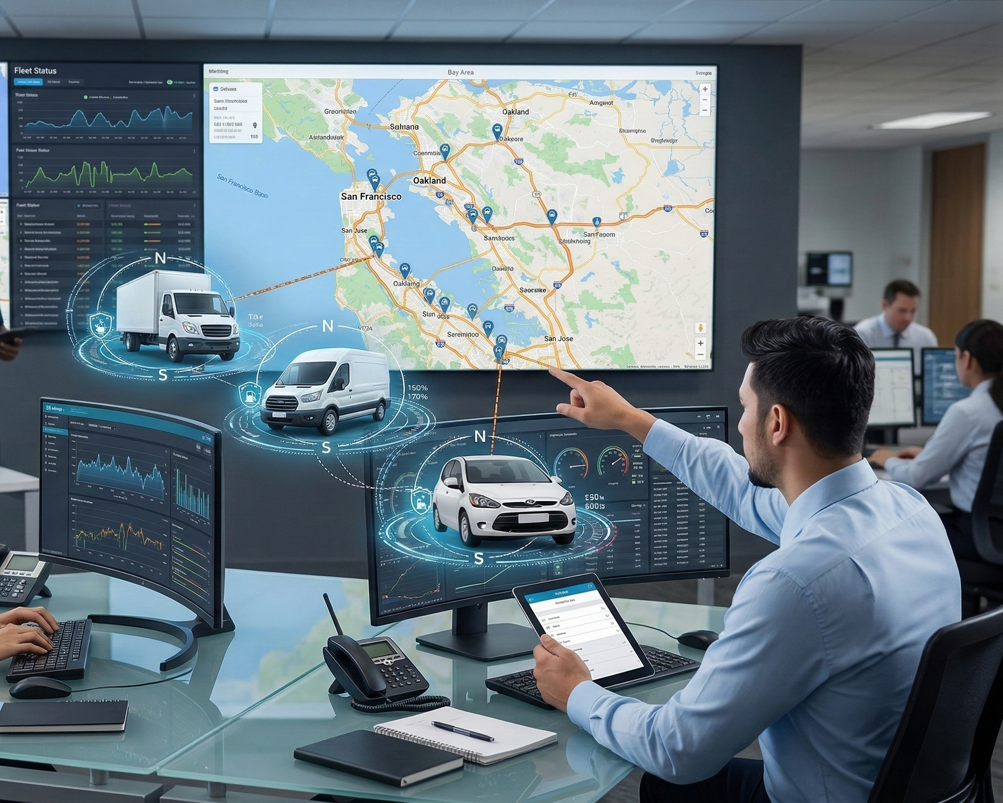 Gestão inteligente de veículos empresariais com controle de rotas, desempenho, localização e relatórios detalhados.